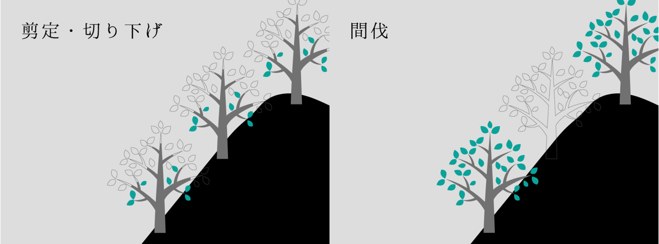 ① 影の要因となる周辺の木々の剪定・樹高の切り下げ