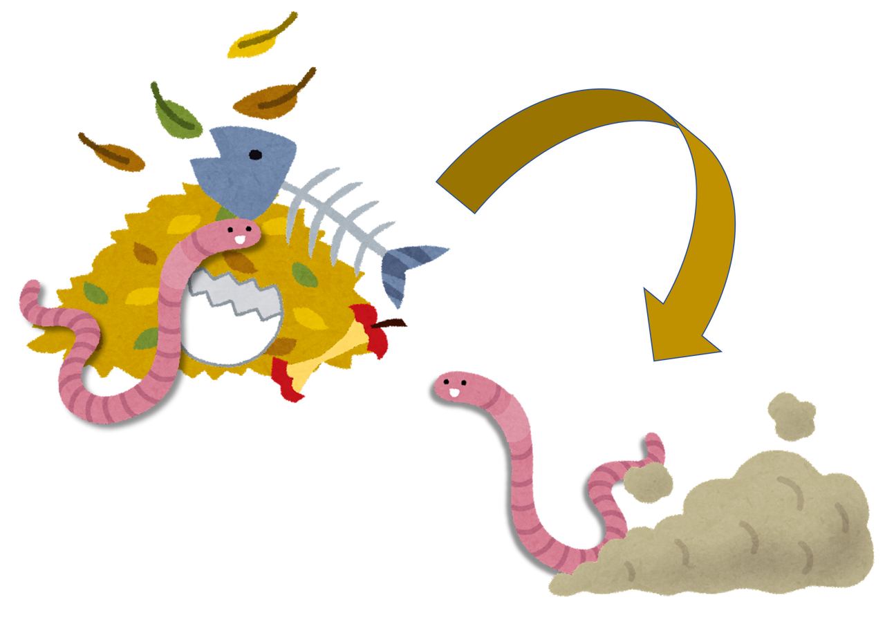 ミミズの糞にはたくさんの土壌微生物がいて、作物の成長を助けたり、土の中の栄養分を作物の根が吸収しやすいように調整したりします。そして、痩せた土を肥沃な土に蘇らせてくれるのです!ミミズの糞はそれ以外にも、病原菌が含まれない(お腹の中で病原菌が消化されている)・農業でのトラブルが起きない(糞は無機化していて、根焼け・窒素飢餓を起こさない)というように、利点が多いんです✨