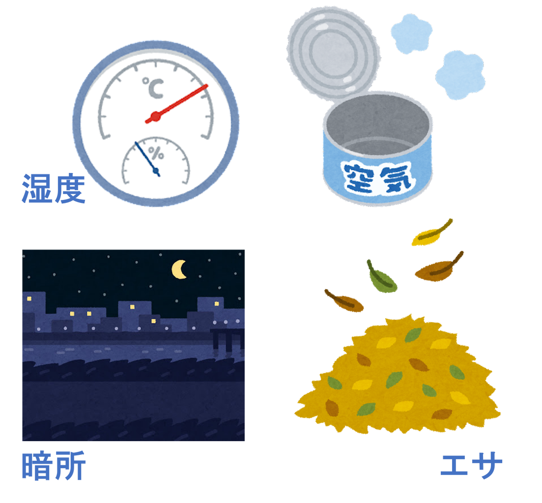 の条件が揃わないと生息ができないのです。それぞれについて、どうしてミミズに適切なのでしょう。
